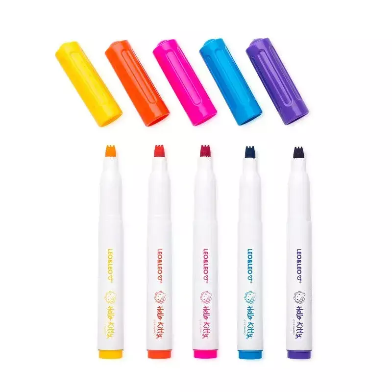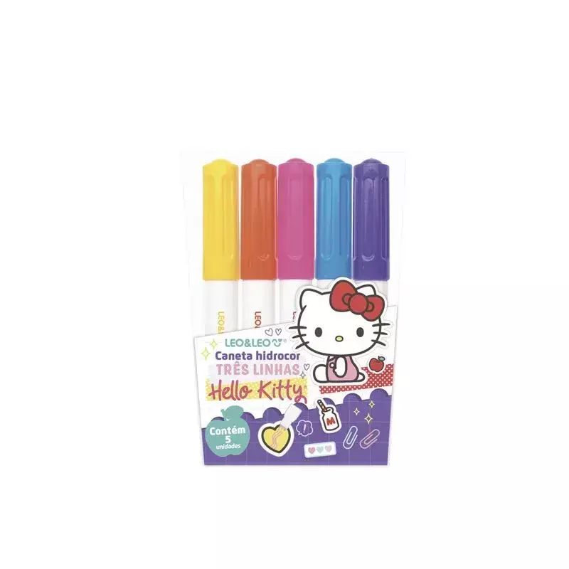 Já as 5 cores disponíveis oferecem mil e uma criações, dando a chance da imaginação tomar conta, desenvolvendo habilidades e o melhor, brincando e aprendendo com a Caneta Hidrocor Hello Kitty Leo&Leo.